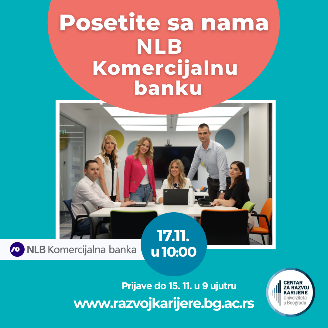 Centar za razvoj karijere i savetovanje studenata Univerziteta u Beogradu organizovao je za studente Univerziteta u Beogradu posetu NLB Komercijalnoj banci u petak, 17.novembra 2023. godine sa početkom od 10 časova.